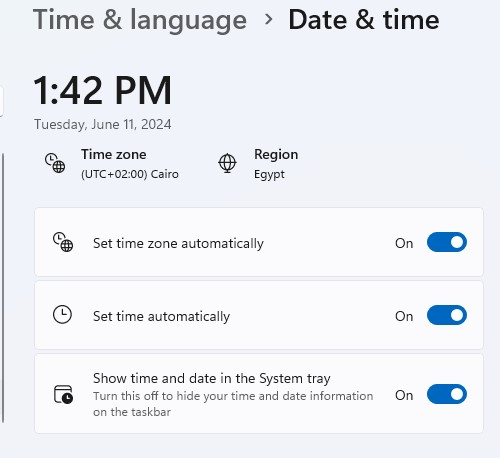 c. Ensure both Set time zone automatically and Set time automatically are switched on.